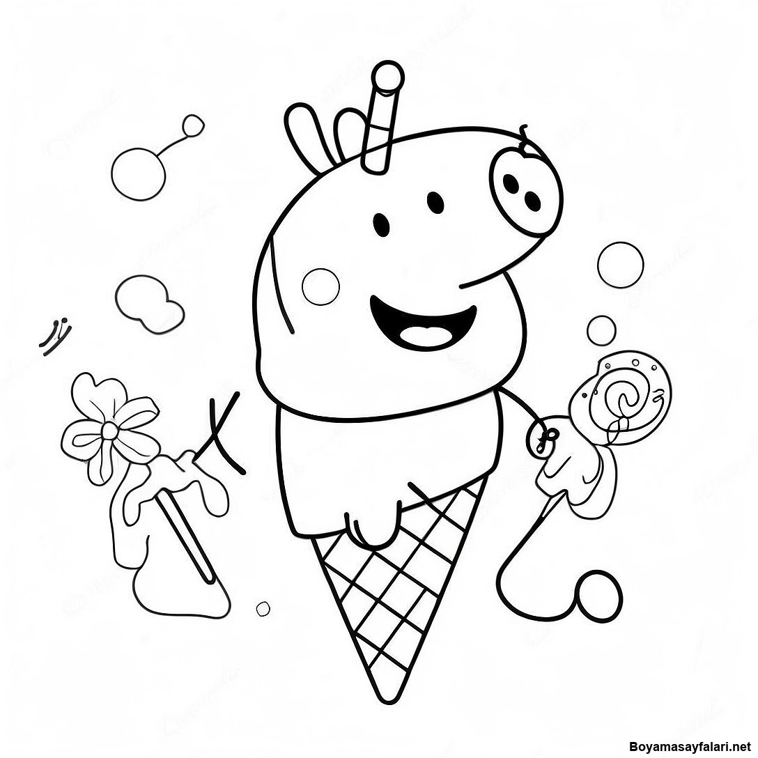 Renkli Dondurma Kulahiyla Peppa Pig Boyama Sayfasi