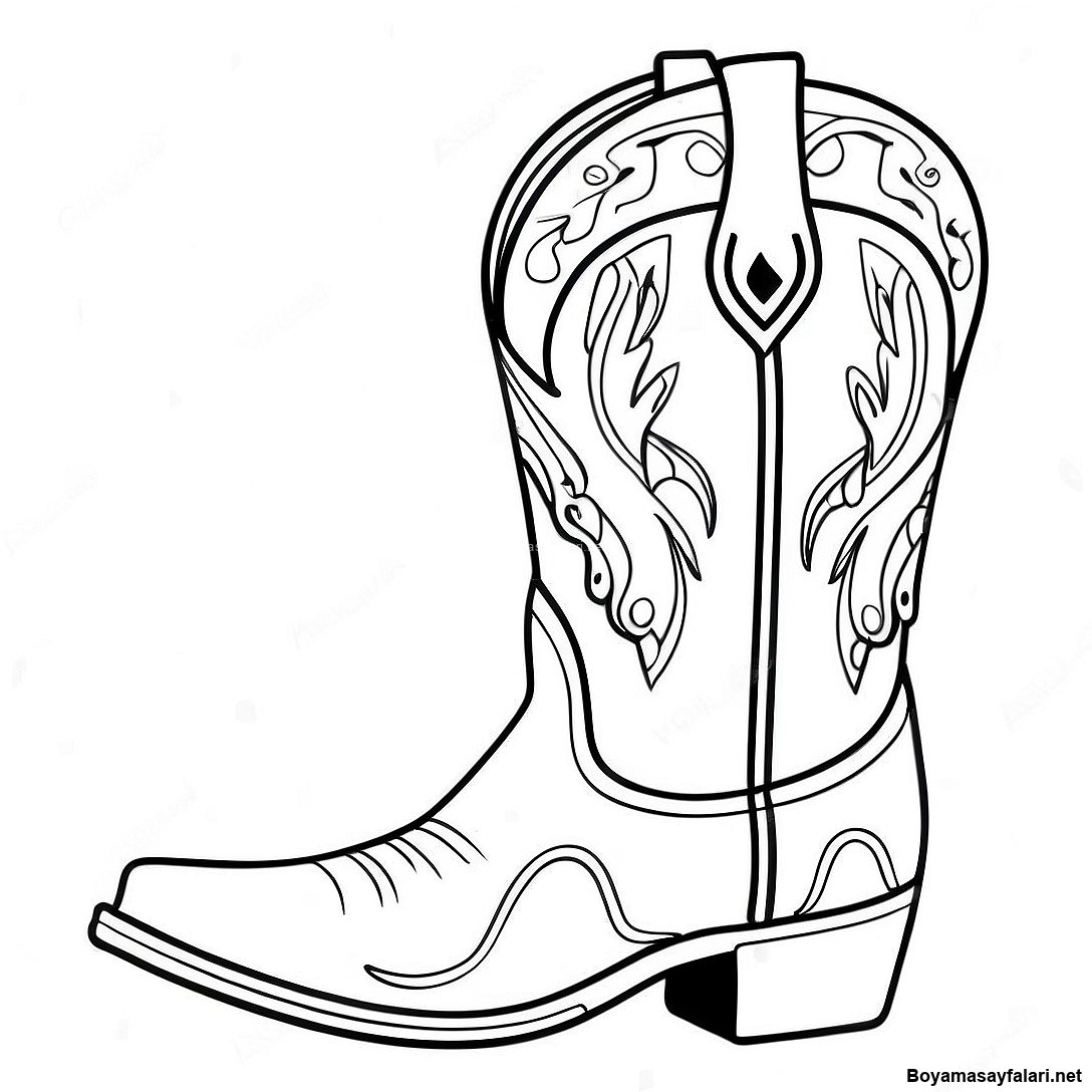 Renkli Kovboy Botu Boyama Sayfası'in Yazdırılabilir PDF'sini İndir