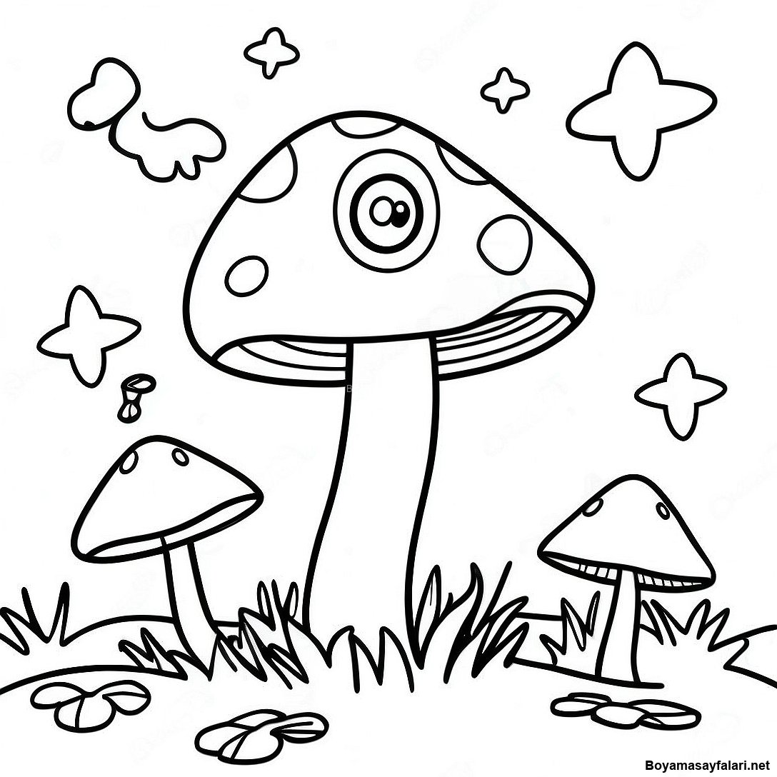 Renkli Mantar Boyama Sayfasi