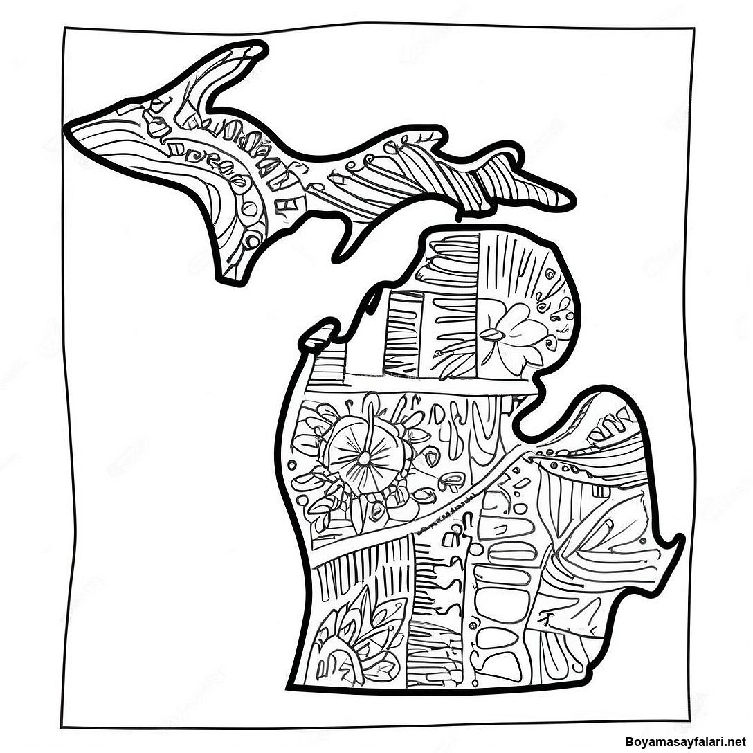 Renkli Michigan Eyalet Haritasi Boyama Sayfasi
