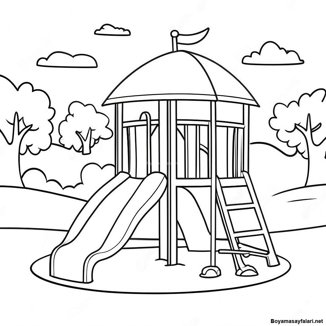 Renkli Oyun Alani Manzarasi Boyama Sayfasi