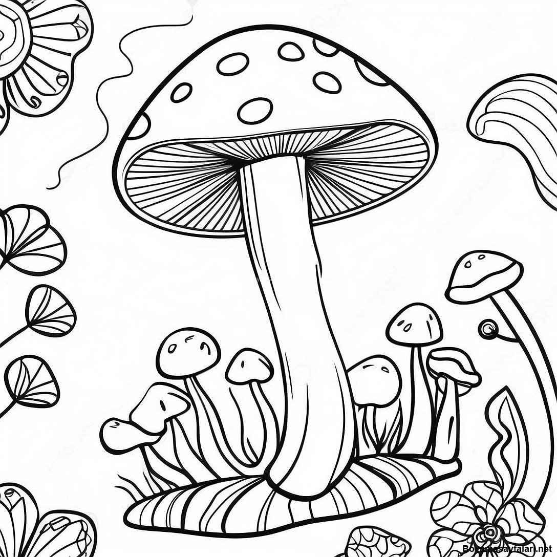 Renkli Psikedelik Mantar Boyama Sayfasi