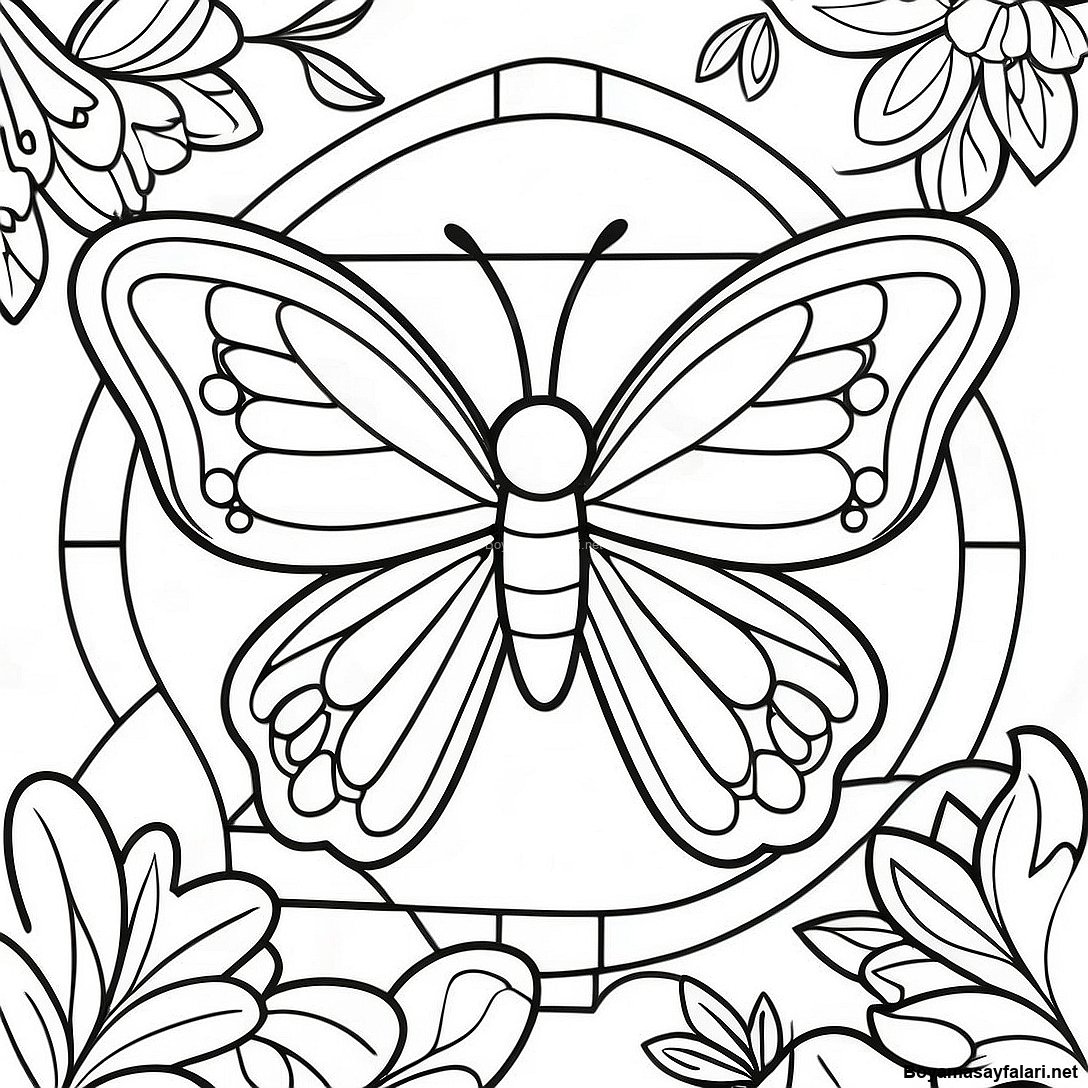 Renkli Sulu Cam Kelebek Boyama Sayfası