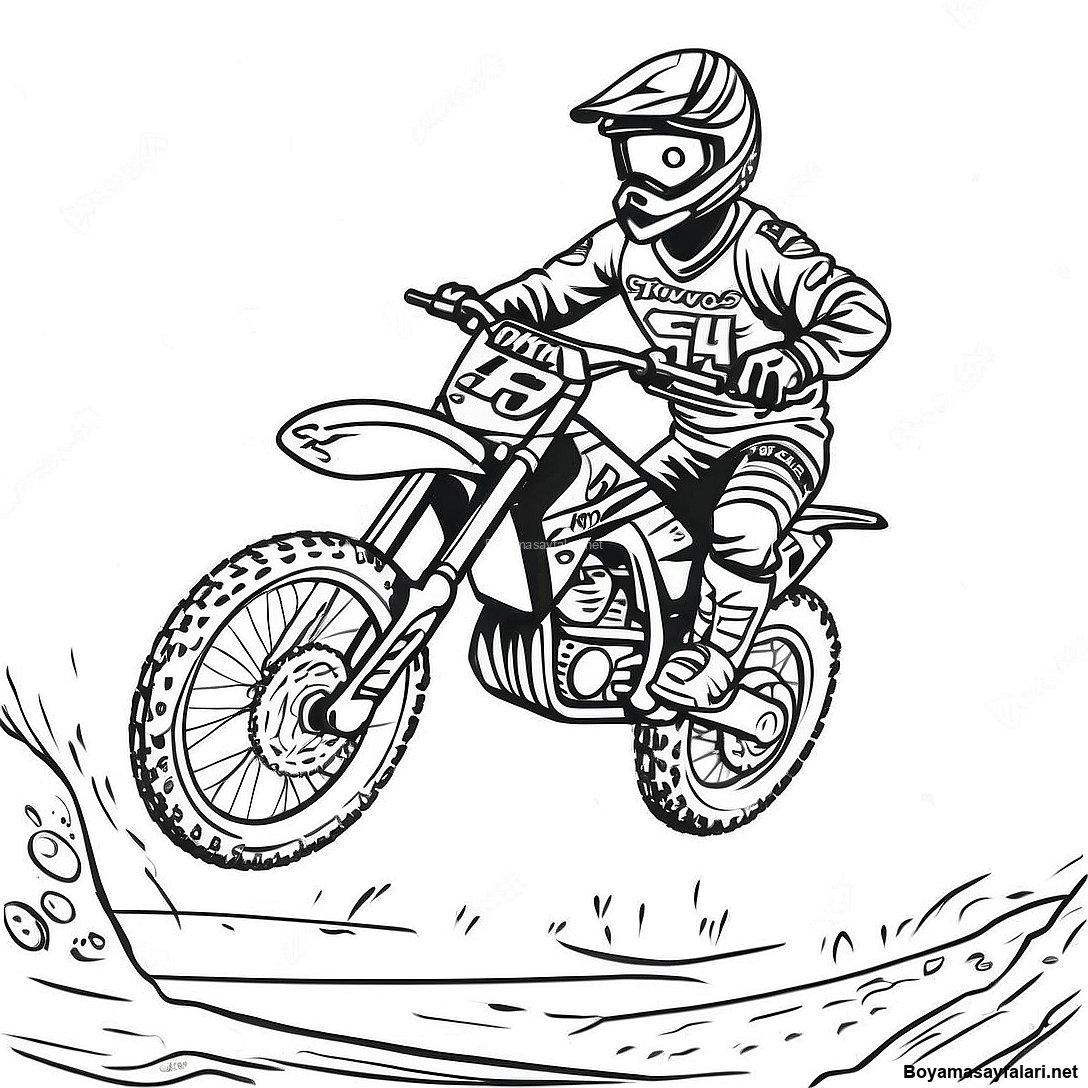 Renkli Süpercross Kirli Bisiklet Sürücüsü Boyama Sayfası