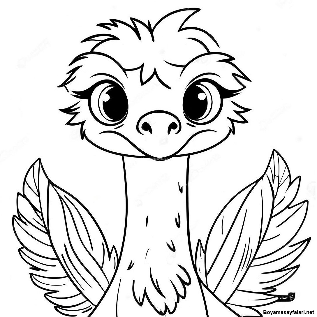 Renkli Tüyleri Olan Devekuşu Boyama Sayfası