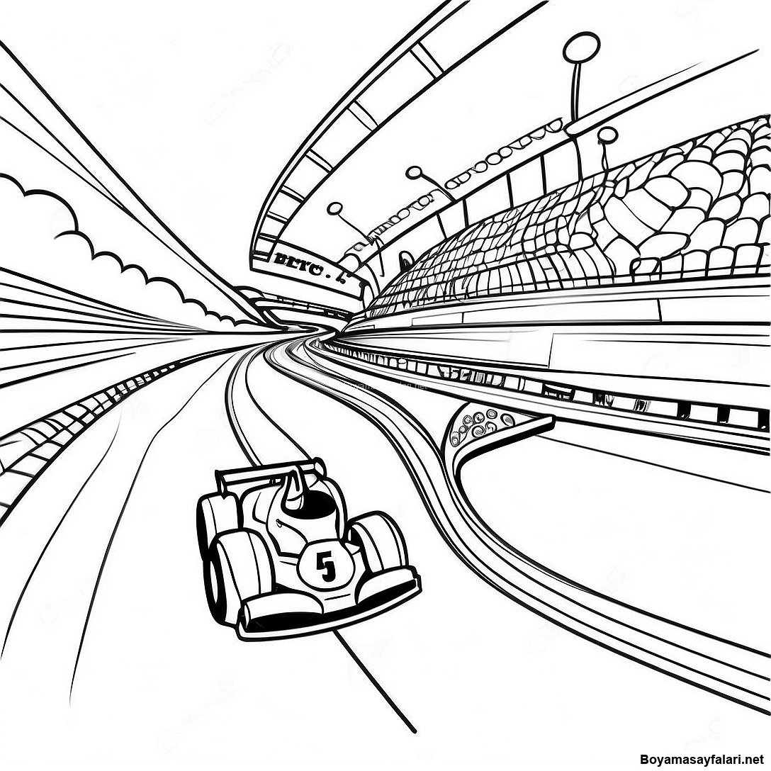 Renkli Yarış Pisti Boyama Sayfası'in Yazdırılabilir PDF'sini İndir