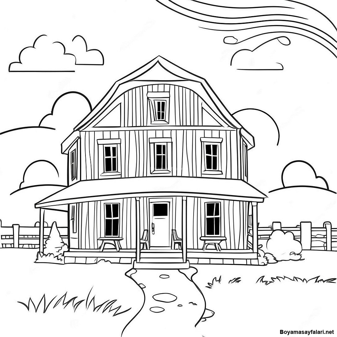 Rustik Ciftlik Evi Manzarasi Boyama Sayfasi