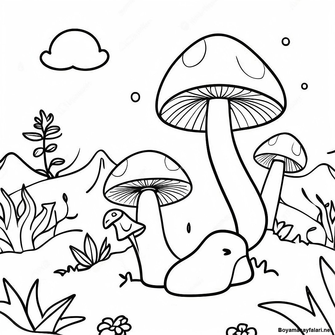 Şaşırtıcı Mantar Ormanı Boyama Sayfası