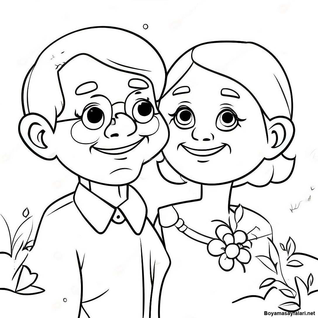 Sevimli Büyükanneler Ve Büyükbabalar Günü Boyama Sayfası