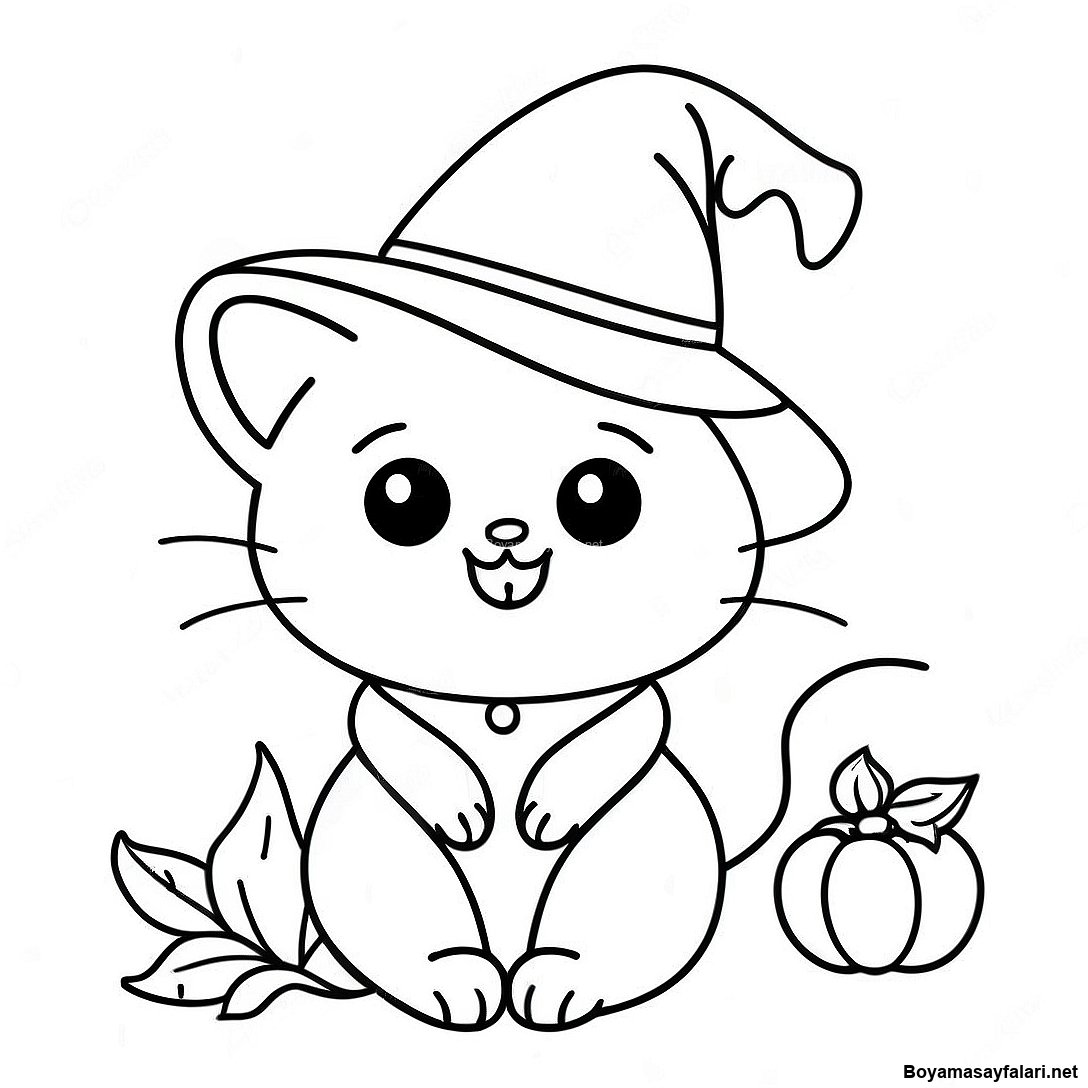 Sevimli Cadı Kedi Boyama Sayfası'in Yazdırılabilir PDF'sini İndir