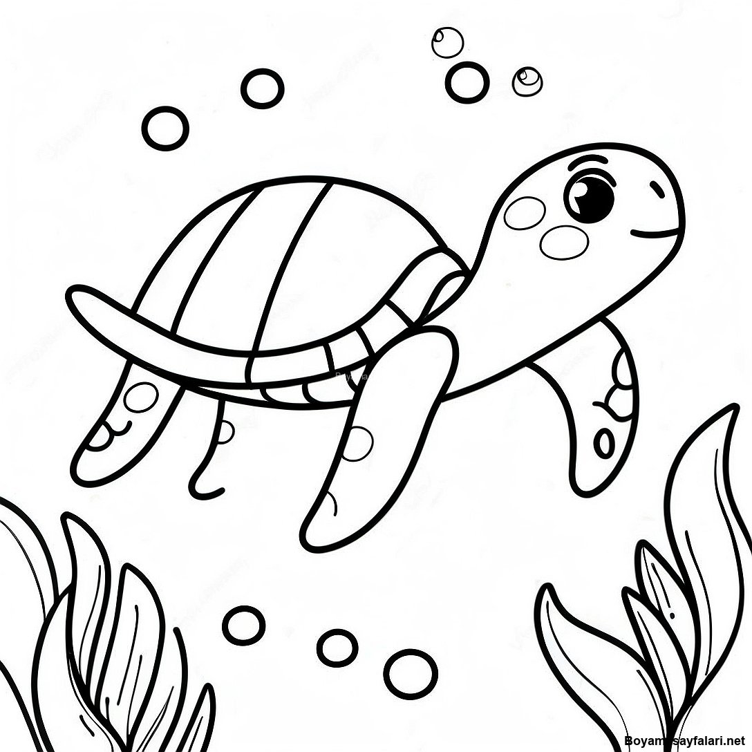 Sevimli Deniz Kaplumbagasi Yuzme Boyama Sayfasi