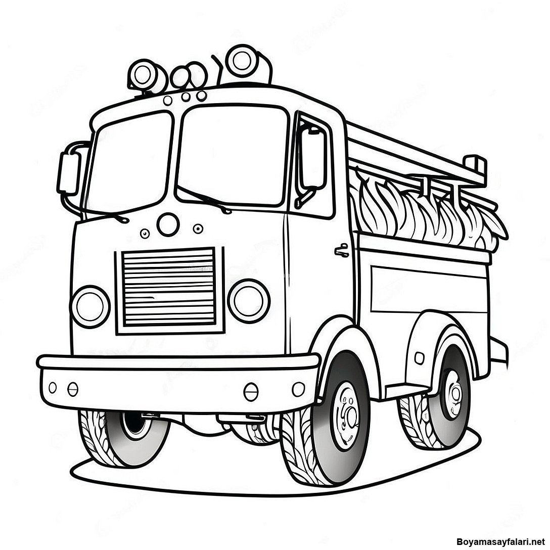 Sevimli İtfaiye Aracı Boyama Sayfası