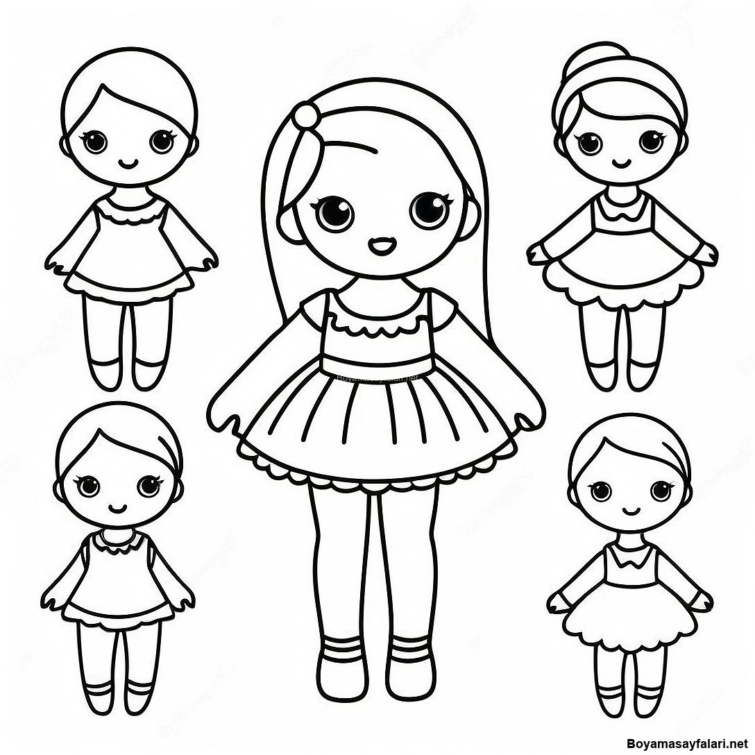 Sevimli Kağıt Bebekler Boyama Sayfası