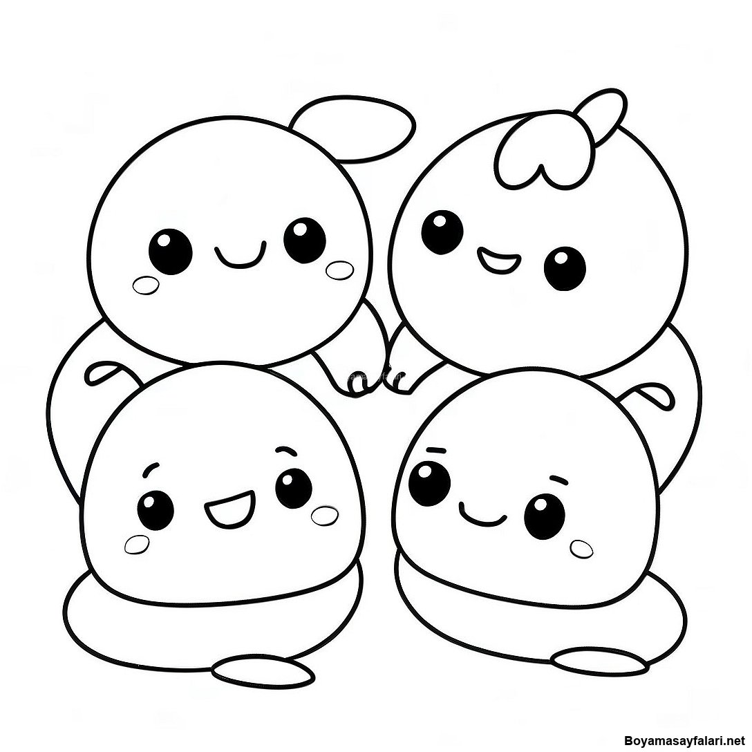 Sevimli Mochi Karakterleri Boyama Sayfasi
