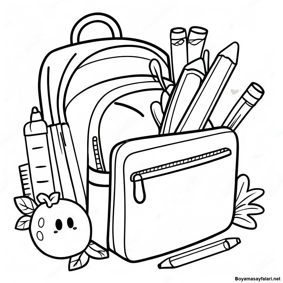 Sevimli Okul Malzemeleri Boyama Sayfasi