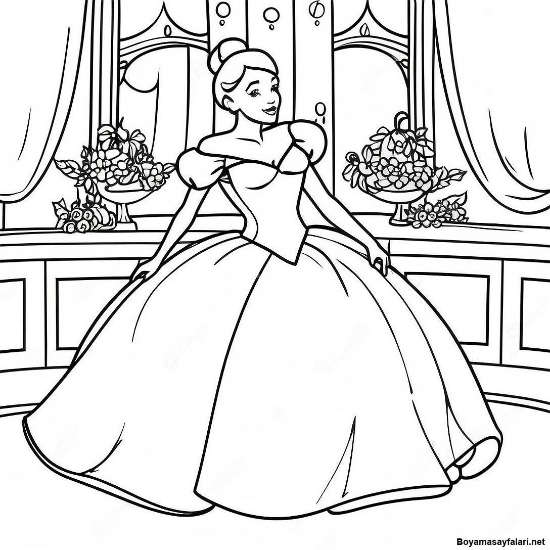 Sindirella Işıltılı Elbisesiyle Boyama Sayfası'in Yazdırılabilir PDF'sini İndir