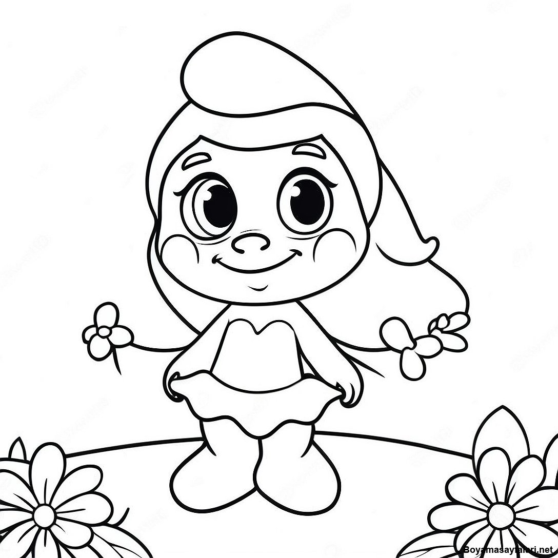 Şirinler Kızı Çiçeklerle Boyama Sayfası