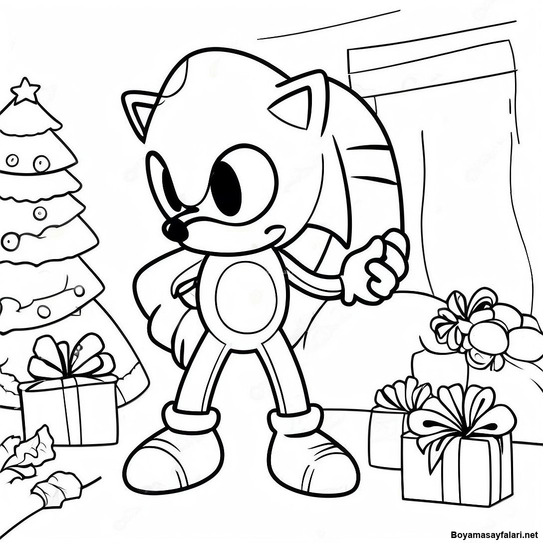 Sonic'in Noel Ağacı Süslediği Boyama Sayfası