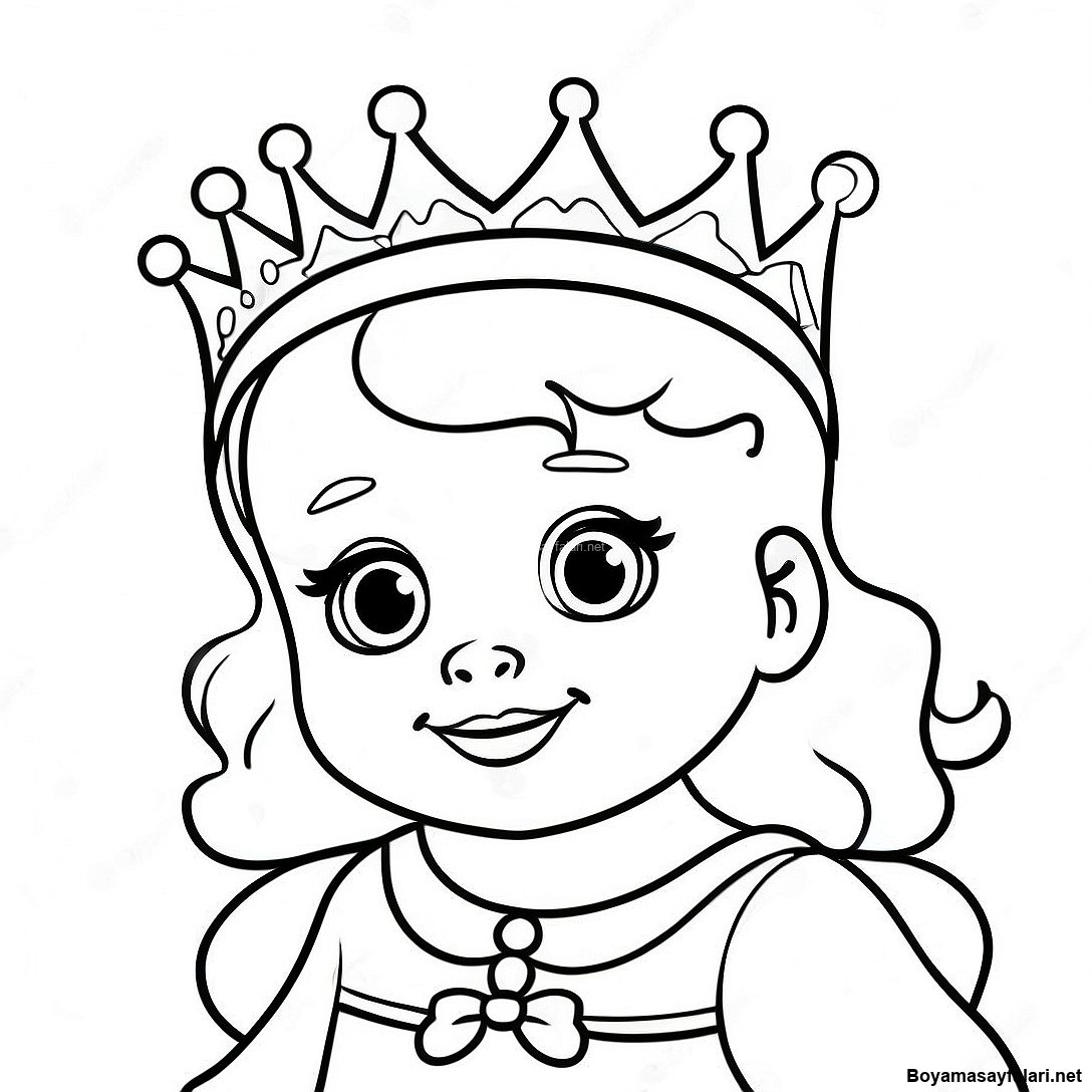 Taçlı Sevimli Bebek Prenses Boyama Sayfası