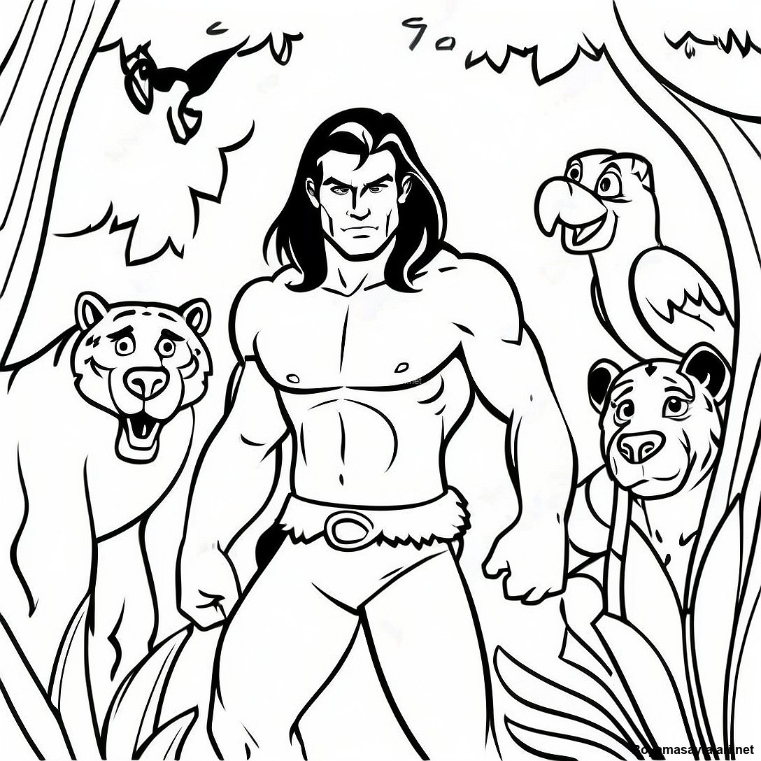 Tarzan'ın Orman Hayvanlarıyla Boyama Sayfası
