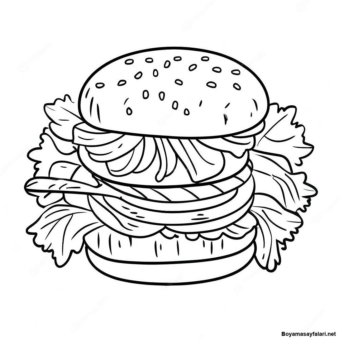 Taze Marullu Sebzeli Burger Boyama Sayfasi