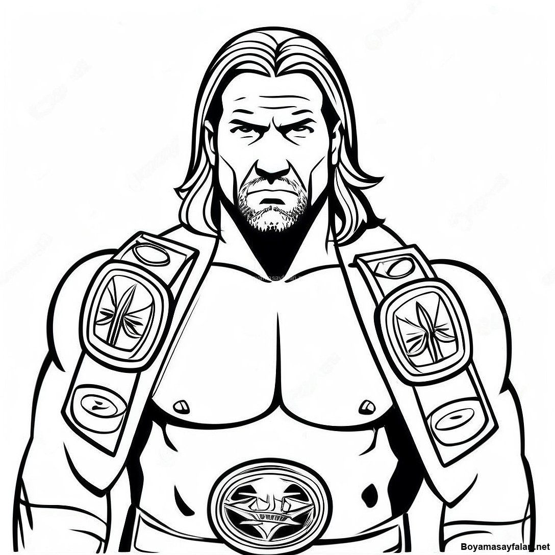 Triple H Iki Kemeri Tutarken Boyama Sayfasi