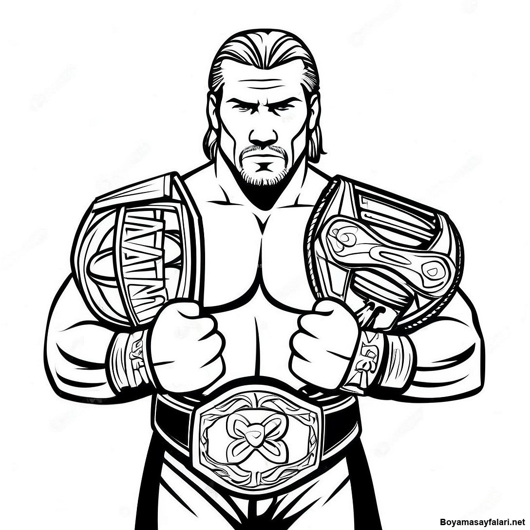 Triple H Iki Kemeri Tutarken Boyama Sayfasi 90534 30526