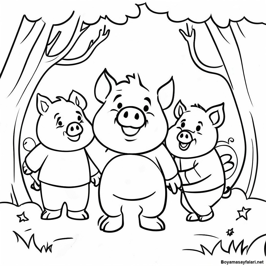 Üç Küçük Domuzcuk Ve Kötü Kurt Boyama Sayfası'in Yazdırılabilir PDF'sini İndir