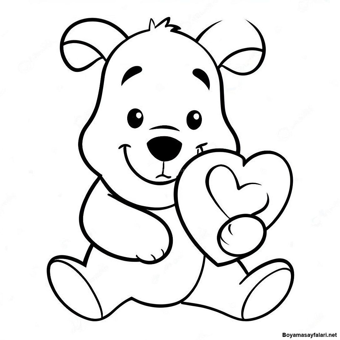 Winnie The Pooh Kalp Tutarken Boyama Sayfası